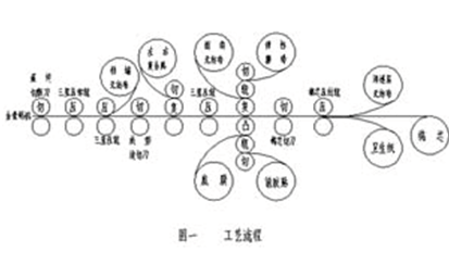 嬰兒紙尿褲生產(chǎn)線機(jī)主要設(shè)備由以下組成: 8套開卷裝置、 8臺復(fù)合輥和壓輥、6臺切刀輥及折疊和疊碼裝置.其工藝流程如圖1所示。